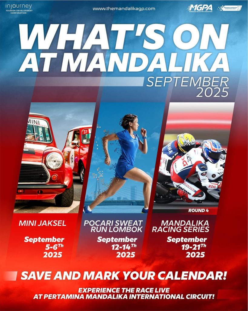 “Agenda September 2025 memperlihatkan bahwa The Mandalika semakin berkembang sebagai pusat kegiatan. Kehadiran berbagai event, mulai dari otomotif, olahraga, hingga hiburan, tidak hanya memperkuat citra pariwisata NTB, tetapi juga berdampak pada pertumbuhan sektor usaha lokal serta penciptaan lapangan kerja bagi masyarakat,” ujar Priandhi Satria.